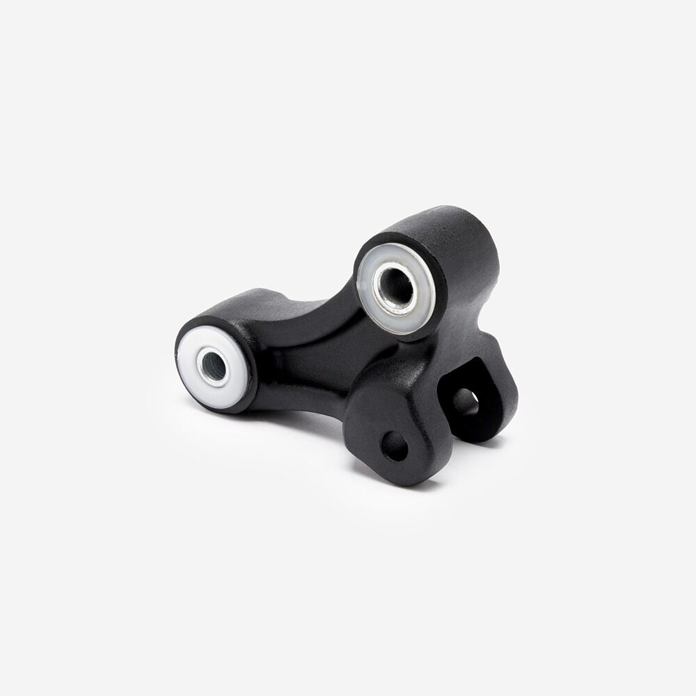 The rear shock linkage is a component of a motorcycle's rear suspension system that connects the rear shock absorber to the swingarm and frame. It typically consists of a series of levers, arms, and pivot points designed to transfer forces and adjust the suspension’s behavior. The linkage helps to control the rear suspension's movement, providing smoother ride quality and better handling by optimizing the shock absorber's performance.