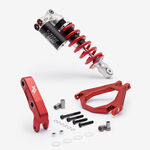 The rear shock linkage is a component of a motorcycle's rear suspension system that connects the rear shock absorber to the swingarm and frame. It typically consists of a series of levers, arms, and pivot points designed to transfer forces and adjust the suspension’s behavior. The linkage helps to control the rear suspension's movement, providing smoother ride quality and better handling by optimizing the shock absorber's performance.