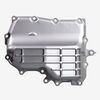 The sump, also known as the oil pan, is a crucial component of a motorcycle's engine lubrication system. It is located at the bottom of the engine and serves as the reservoir for engine oil. The sump collects and holds the oil as it drains from the engine, allowing it to be circulated back through the engine for lubrication. The design of the sump typically includes a drain plug for oil changes and may also feature a baffle or pick-up tube to ensure proper oil flow.