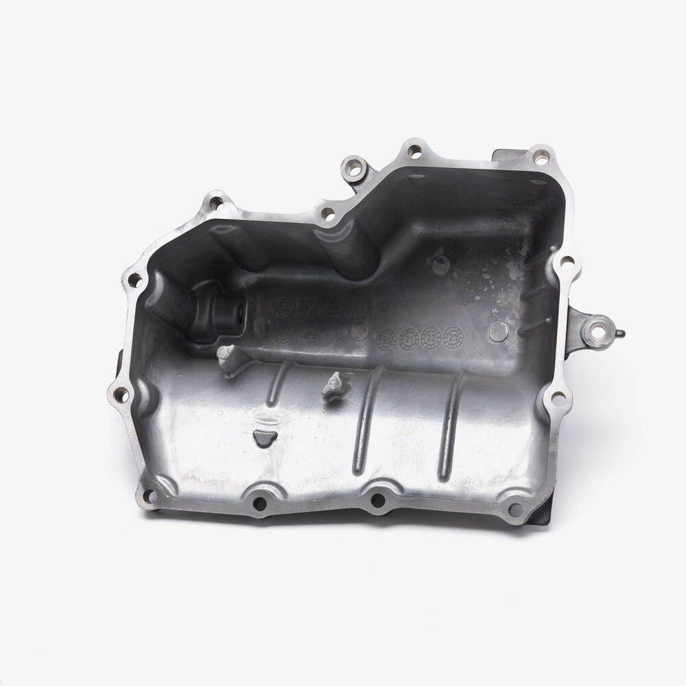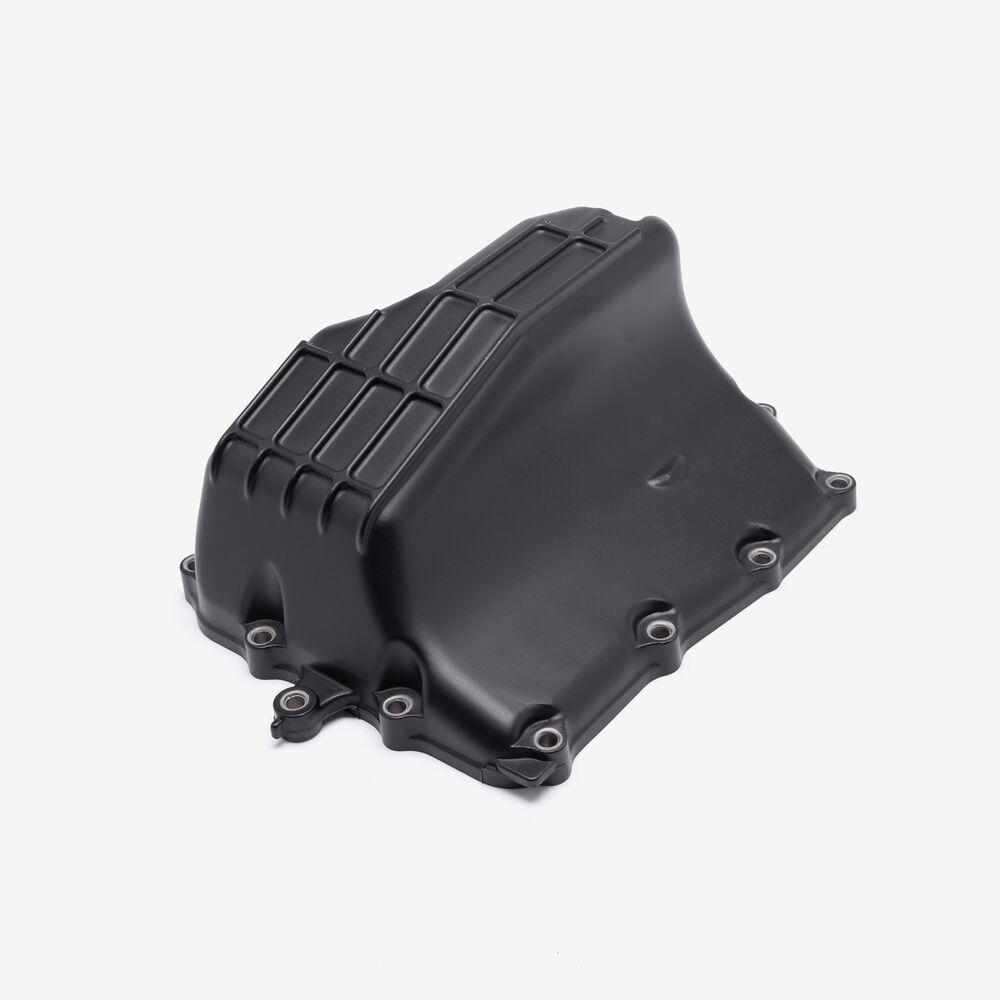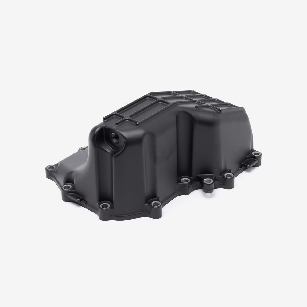 The sump, also known as the oil pan, is a crucial component of a motorcycle's engine lubrication system. It is located at the bottom of the engine and serves as the reservoir for engine oil. The sump collects and holds the oil as it drains from the engine, allowing it to be circulated back through the engine for lubrication. The design of the sump typically includes a drain plug for oil changes and may also feature a baffle or pick-up tube to ensure proper oil flow.