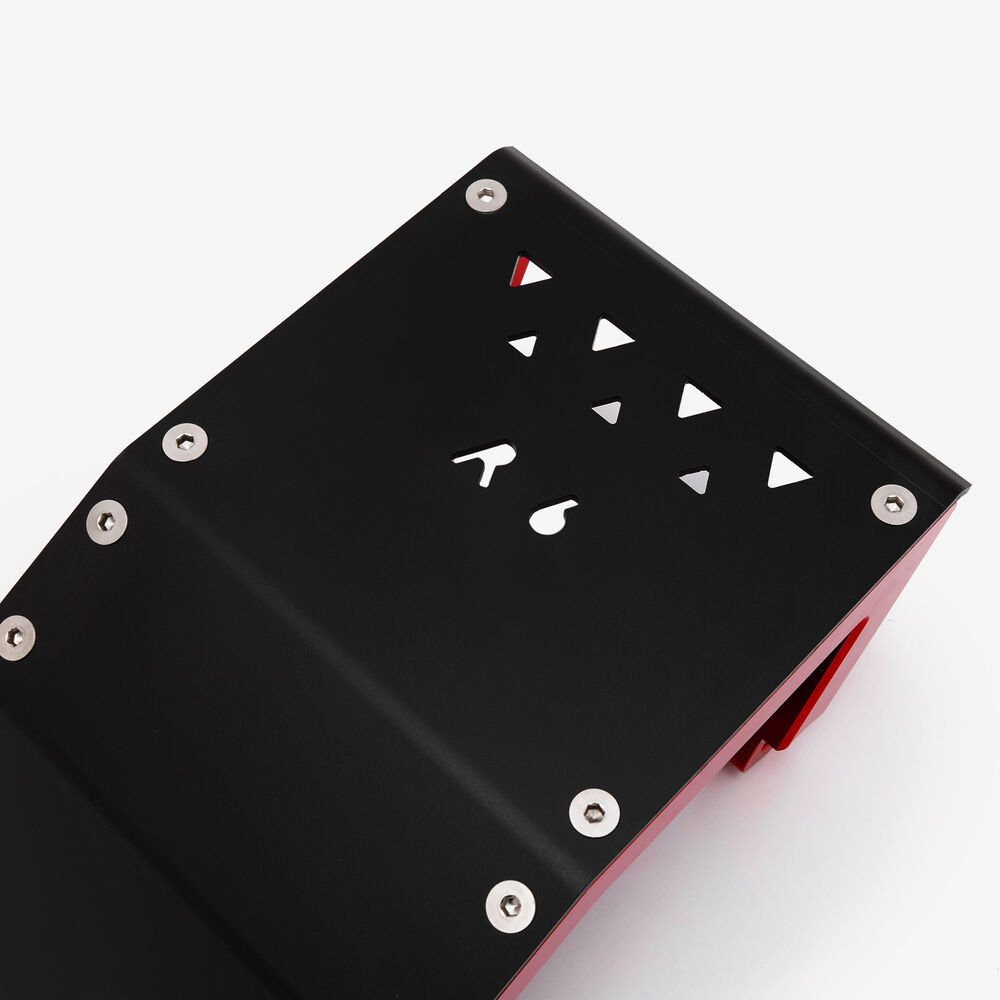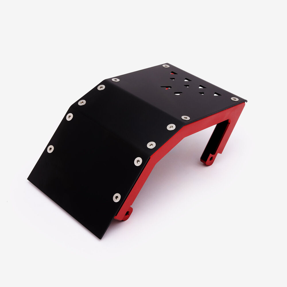 The sump guard, also known as an oil sump guard or skid plate, is a protective component mounted on the underside of a motorcycle. It shields the engine's oil sump and other vulnerable parts from damage caused by impacts, rocks, debris, or rough terrain. Typically made from durable materials such as aluminum, steel, or high-strength plastic, the sump guard helps prevent oil pan punctures and protects critical engine components during off-road riding or in harsh conditions.