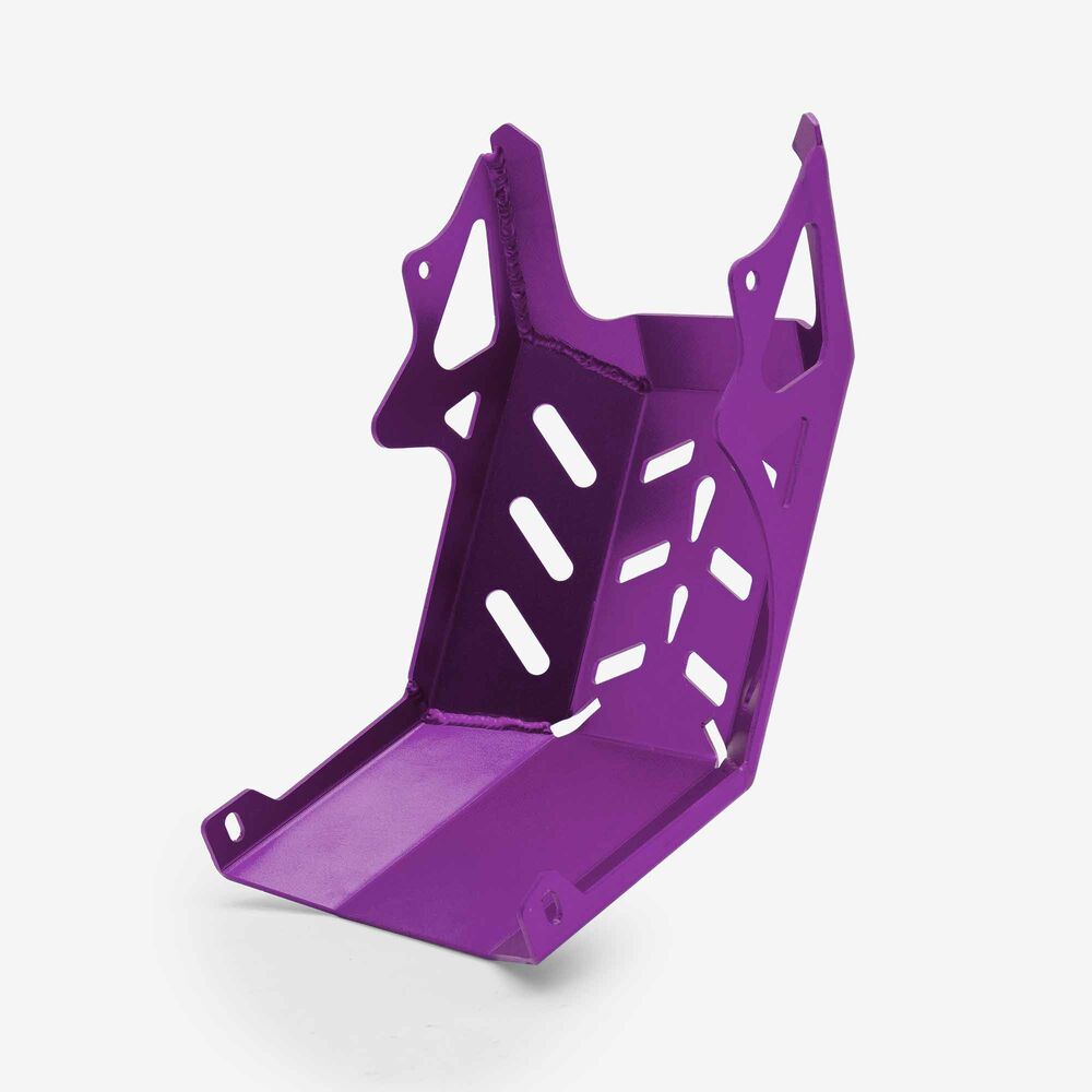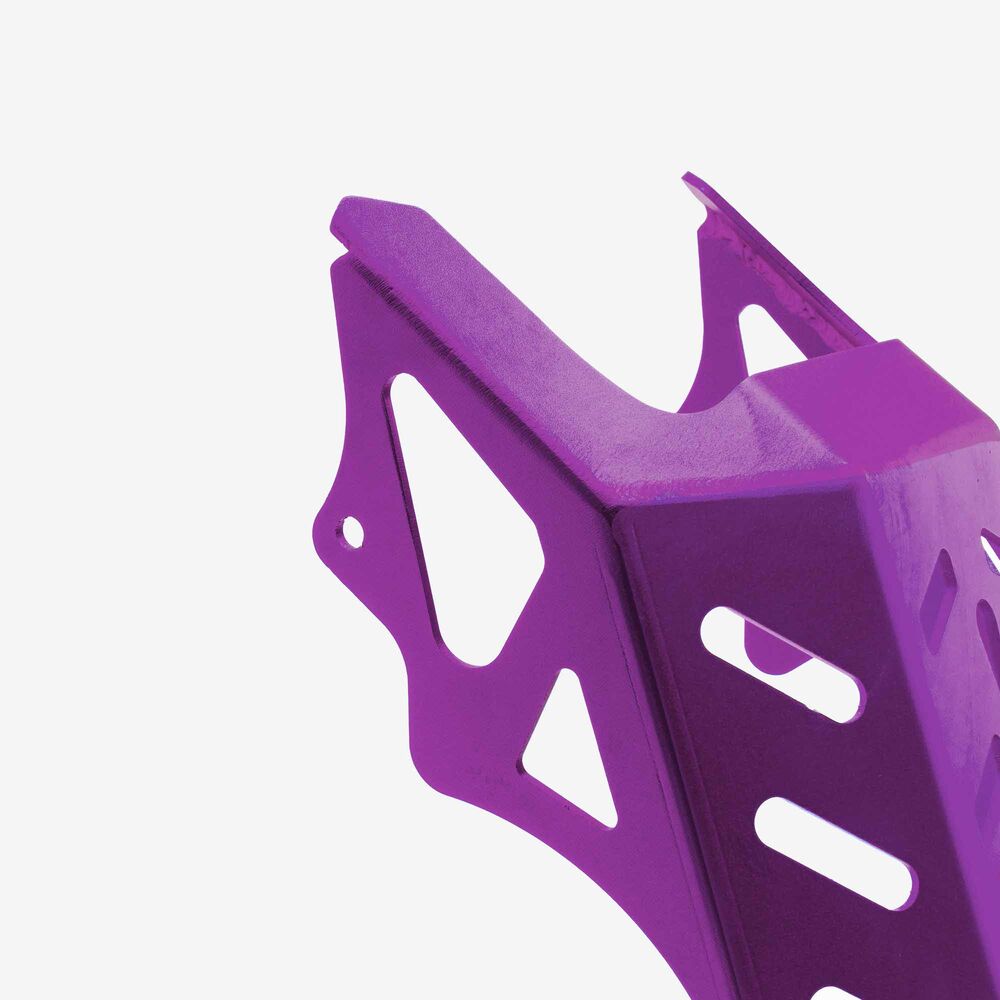 The sump guard, also known as an oil sump guard or skid plate, is a protective component mounted on the underside of a motorcycle. It shields the engine's oil sump and other vulnerable parts from damage caused by impacts, rocks, debris, or rough terrain. Typically made from durable materials such as aluminum, steel, or high-strength plastic, the sump guard helps prevent oil pan punctures and protects critical engine components during off-road riding or in harsh conditions.