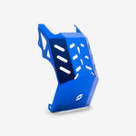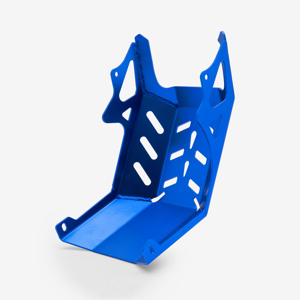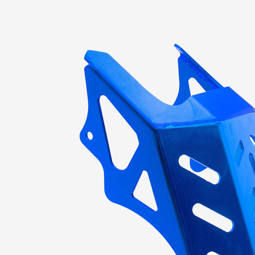 The sump guard, also known as an oil sump guard or skid plate, is a protective component mounted on the underside of a motorcycle. It shields the engine's oil sump and other vulnerable parts from damage caused by impacts, rocks, debris, or rough terrain. Typically made from durable materials such as aluminum, steel, or high-strength plastic, the sump guard helps prevent oil pan punctures and protects critical engine components during off-road riding or in harsh conditions.