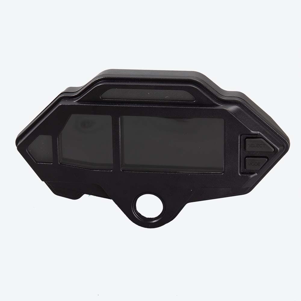 The speedo assembly, also known as the speedometer assembly, is the complete unit responsible for measuring and displaying the motorcycle's speed. It typically includes the speedometer gauge, which indicates the current speed, and may also encompass additional components such as the speedo drive, mounting brackets, and wiring or cables. The assembly converts rotational motion from the front wheel or transmission into a readable speed display. It is mounted on the motorcycle’s handlebars or dashboard, providing the rider with essential speed information for safe and efficient riding.
