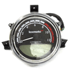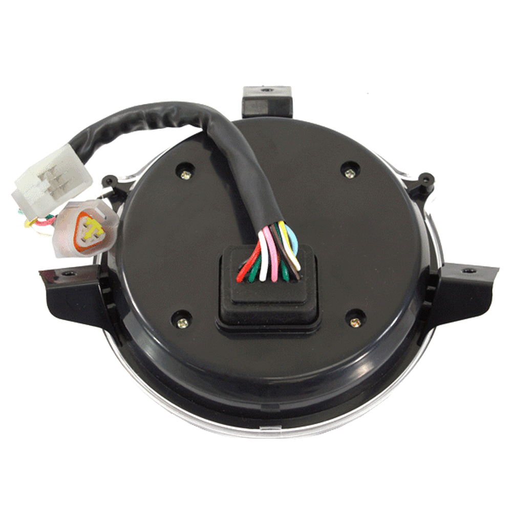 The speedo assembly, also known as the speedometer assembly, is the complete unit responsible for measuring and displaying the motorcycle's speed. It typically includes the speedometer gauge, which indicates the current speed, and may also encompass additional components such as the speedo drive, mounting brackets, and wiring or cables. The assembly converts rotational motion from the front wheel or transmission into a readable speed display. It is mounted on the motorcycle’s handlebars or dashboard, providing the rider with essential speed information for safe and efficient riding.
