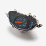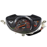 The speedo assembly, also known as the speedometer assembly, is the complete unit responsible for measuring and displaying the motorcycle's speed. It typically includes the speedometer gauge, which indicates the current speed, and may also encompass additional components such as the speedo drive, mounting brackets, and wiring or cables. The assembly converts rotational motion from the front wheel or transmission into a readable speed display. It is mounted on the motorcycle’s handlebars or dashboard, providing the rider with essential speed information for safe and efficient riding.