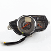 The speedo assembly, also known as the speedometer assembly, is the complete unit responsible for measuring and displaying the motorcycle's speed. It typically includes the speedometer gauge, which indicates the current speed, and may also encompass additional components such as the speedo drive, mounting brackets, and wiring or cables. The assembly converts rotational motion from the front wheel or transmission into a readable speed display. It is mounted on the motorcycle’s handlebars or dashboard, providing the rider with essential speed information for safe and efficient riding.
