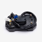The speedo assembly, also known as the speedometer assembly, is the complete unit responsible for measuring and displaying the motorcycle's speed. It typically includes the speedometer gauge, which indicates the current speed, and may also encompass additional components such as the speedo drive, mounting brackets, and wiring or cables. The assembly converts rotational motion from the front wheel or transmission into a readable speed display. It is mounted on the motorcycle’s handlebars or dashboard, providing the rider with essential speed information for safe and efficient riding.