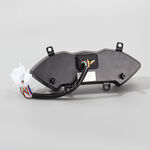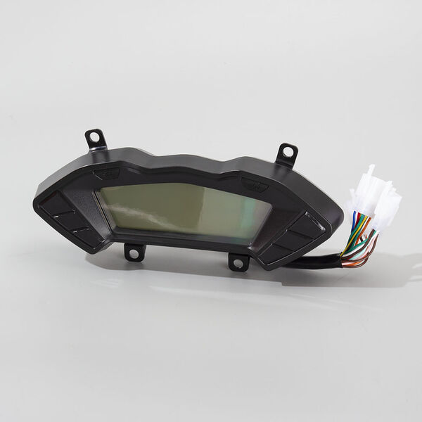 The speedo assembly, also known as the speedometer assembly, is the complete unit responsible for measuring and displaying the motorcycle's speed. It typically includes the speedometer gauge, which indicates the current speed, and may also encompass additional components such as the speedo drive, mounting brackets, and wiring or cables. The assembly converts rotational motion from the front wheel or transmission into a readable speed display. It is mounted on the motorcycle’s handlebars or dashboard, providing the rider with essential speed information for safe and efficient riding.