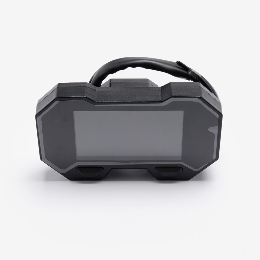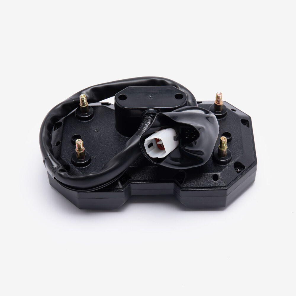 The speedo assembly, also known as the speedometer assembly, is the complete unit responsible for measuring and displaying the motorcycle's speed. It typically includes the speedometer gauge, which indicates the current speed, and may also encompass additional components such as the speedo drive, mounting brackets, and wiring or cables. The assembly converts rotational motion from the front wheel or transmission into a readable speed display. It is mounted on the motorcycle’s handlebars or dashboard, providing the rider with essential speed information for safe and efficient riding.