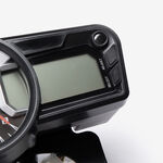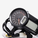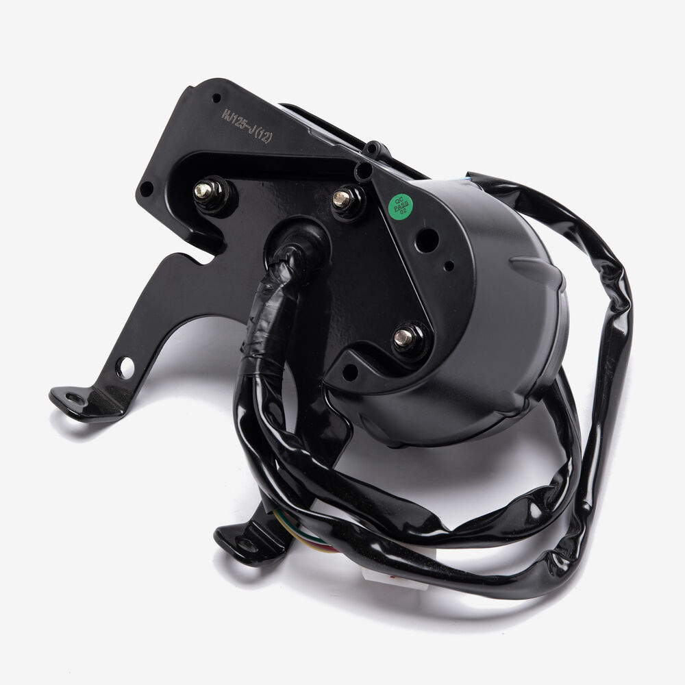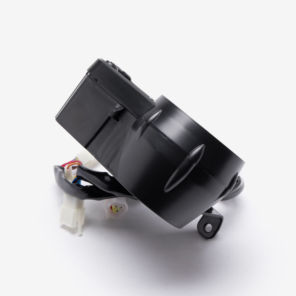 The speedo assembly, also known as the speedometer assembly, is the complete unit responsible for measuring and displaying the motorcycle's speed. It typically includes the speedometer gauge, which indicates the current speed, and may also encompass additional components such as the speedo drive, mounting brackets, and wiring or cables. The assembly converts rotational motion from the front wheel or transmission into a readable speed display. It is mounted on the motorcycle’s handlebars or dashboard, providing the rider with essential speed information for safe and efficient riding.