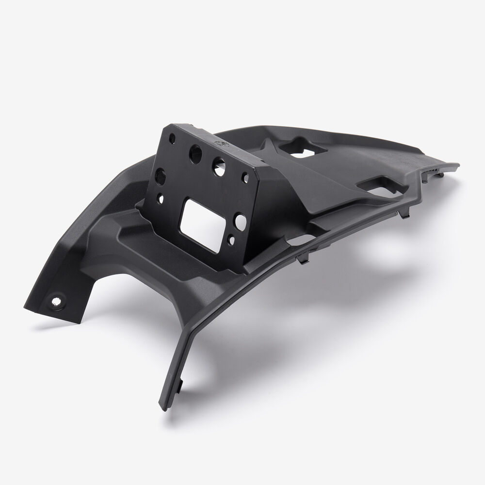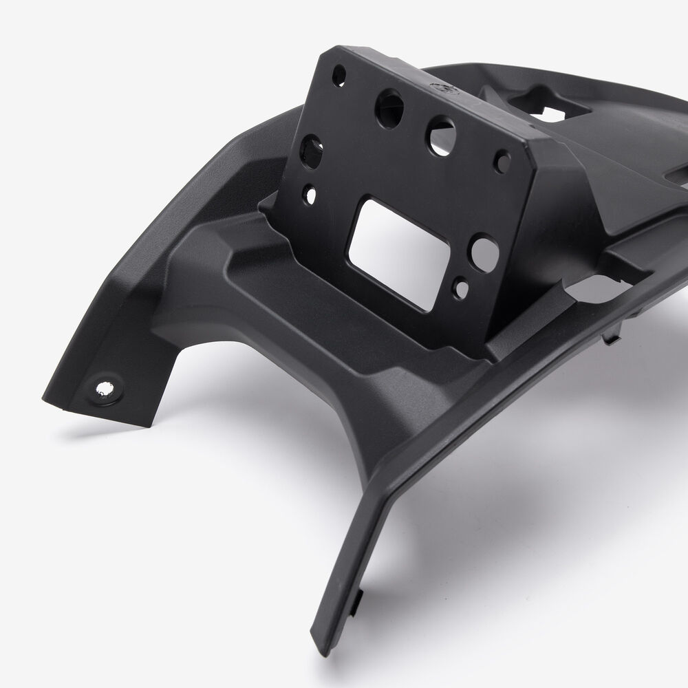 The speedo assembly bracket is a mounting component designed to secure the speedometer and its associated components to the motorcycle's frame or handlebars. Typically made from metal or durable plastic, the bracket provides a stable and adjustable platform for the speedometer, ensuring it is positioned for optimal visibility and accessibility to the rider. It often includes provisions for attaching the speedometer, speedo cable, and any additional hardware needed for installation.