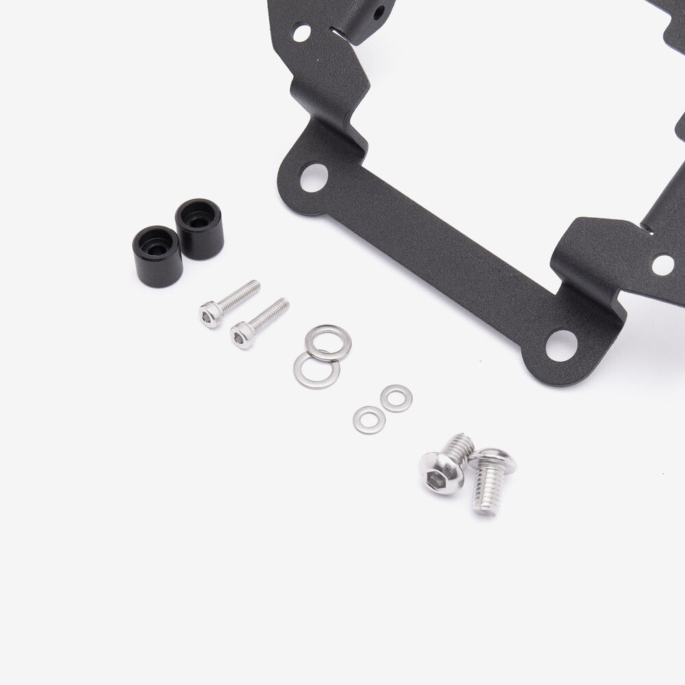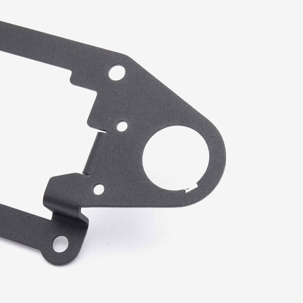 The speedo assembly bracket is a mounting component designed to secure the speedometer and its associated components to the motorcycle's frame or handlebars. Typically made from metal or durable plastic, the bracket provides a stable and adjustable platform for the speedometer, ensuring it is positioned for optimal visibility and accessibility to the rider. It often includes provisions for attaching the speedometer, speedo cable, and any additional hardware needed for installation.