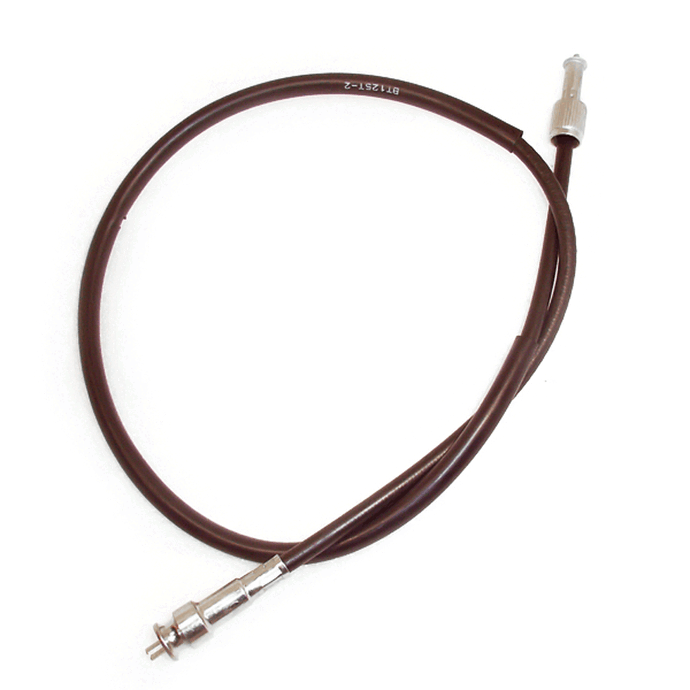 The speedo cable is a flexible, often metal, cable that transmits rotational motion from the motorcycle's front wheel or transmission to the speedometer. It consists of a core that rotates inside a protective sheath, which is connected at one end to the speedometer drive and at the other end to the speedometer itself. As the wheel or transmission turns, the cable rotates and transfers this motion to the speedometer, enabling it to display the motorcycle's speed accurately. Proper maintenance and alignment of the speedo cable are crucial for reliable and accurate speed readings.
