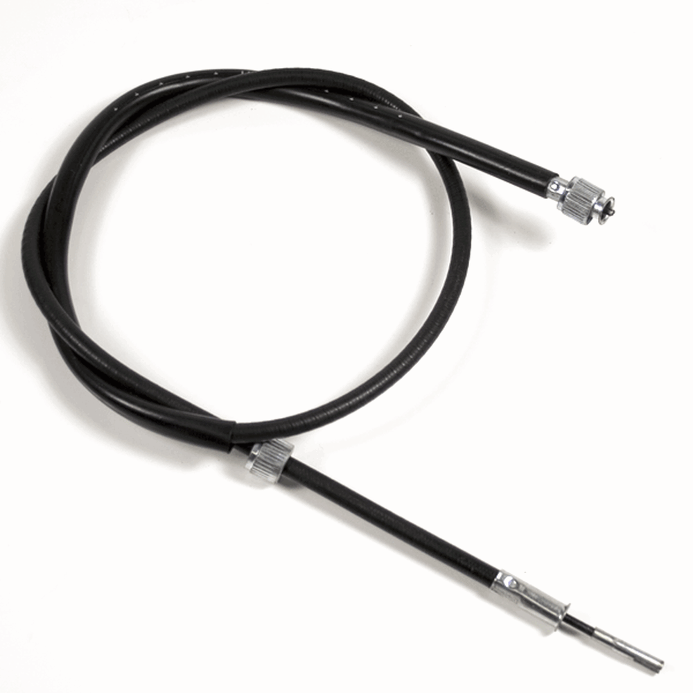 The speedo cable is a flexible, often metal, cable that transmits rotational motion from the motorcycle's front wheel or transmission to the speedometer. It consists of a core that rotates inside a protective sheath, which is connected at one end to the speedometer drive and at the other end to the speedometer itself. As the wheel or transmission turns, the cable rotates and transfers this motion to the speedometer, enabling it to display the motorcycle's speed accurately. Proper maintenance and alignment of the speedo cable are crucial for reliable and accurate speed readings.