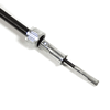 The speedo cable is a flexible, often metal, cable that transmits rotational motion from the motorcycle's front wheel or transmission to the speedometer. It consists of a core that rotates inside a protective sheath, which is connected at one end to the speedometer drive and at the other end to the speedometer itself. As the wheel or transmission turns, the cable rotates and transfers this motion to the speedometer, enabling it to display the motorcycle's speed accurately. Proper maintenance and alignment of the speedo cable are crucial for reliable and accurate speed readings.