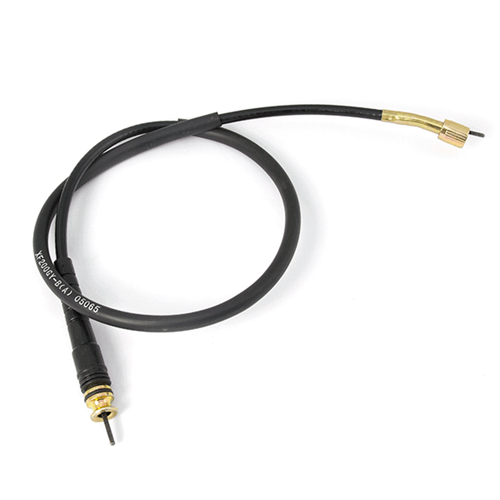 The speedo cable is a flexible, often metal, cable that transmits rotational motion from the motorcycle's front wheel or transmission to the speedometer. It consists of a core that rotates inside a protective sheath, which is connected at one end to the speedometer drive and at the other end to the speedometer itself. As the wheel or transmission turns, the cable rotates and transfers this motion to the speedometer, enabling it to display the motorcycle's speed accurately. Proper maintenance and alignment of the speedo cable are crucial for reliable and accurate speed readings.