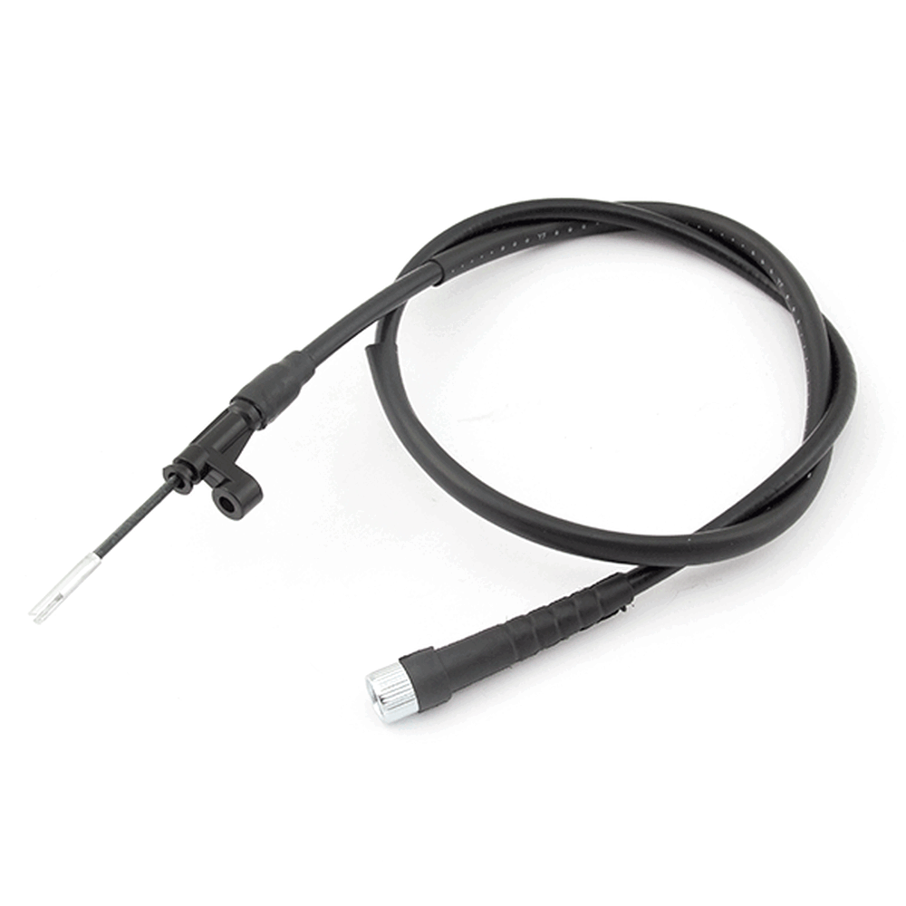 The speedo cable is a flexible, often metal, cable that transmits rotational motion from the motorcycle's front wheel or transmission to the speedometer. It consists of a core that rotates inside a protective sheath, which is connected at one end to the speedometer drive and at the other end to the speedometer itself. As the wheel or transmission turns, the cable rotates and transfers this motion to the speedometer, enabling it to display the motorcycle's speed accurately. Proper maintenance and alignment of the speedo cable are crucial for reliable and accurate speed readings.