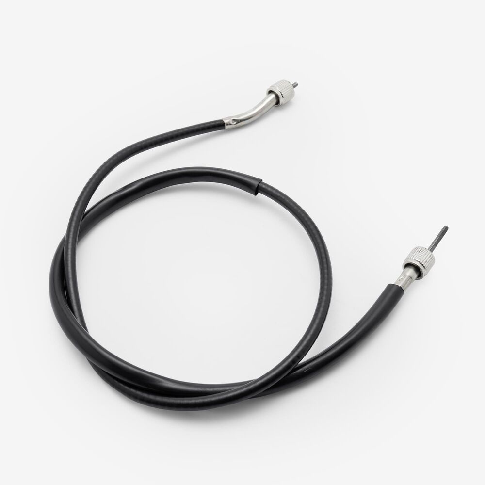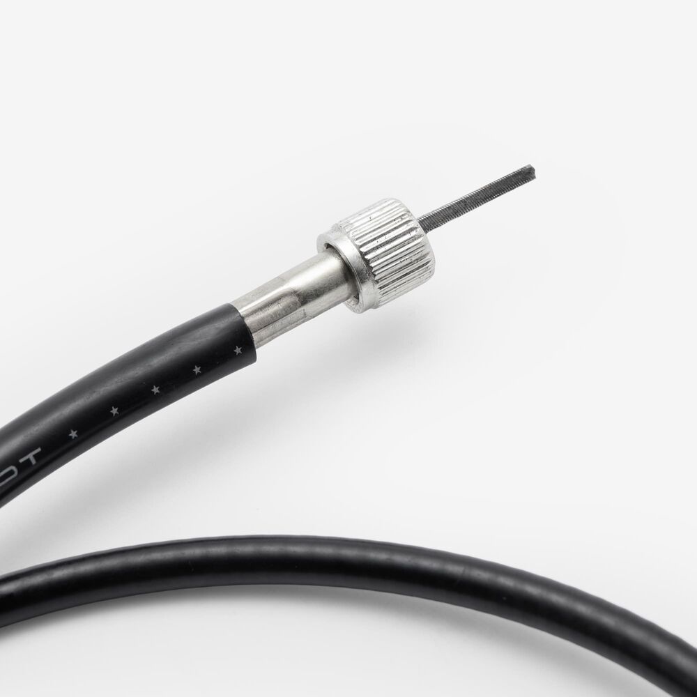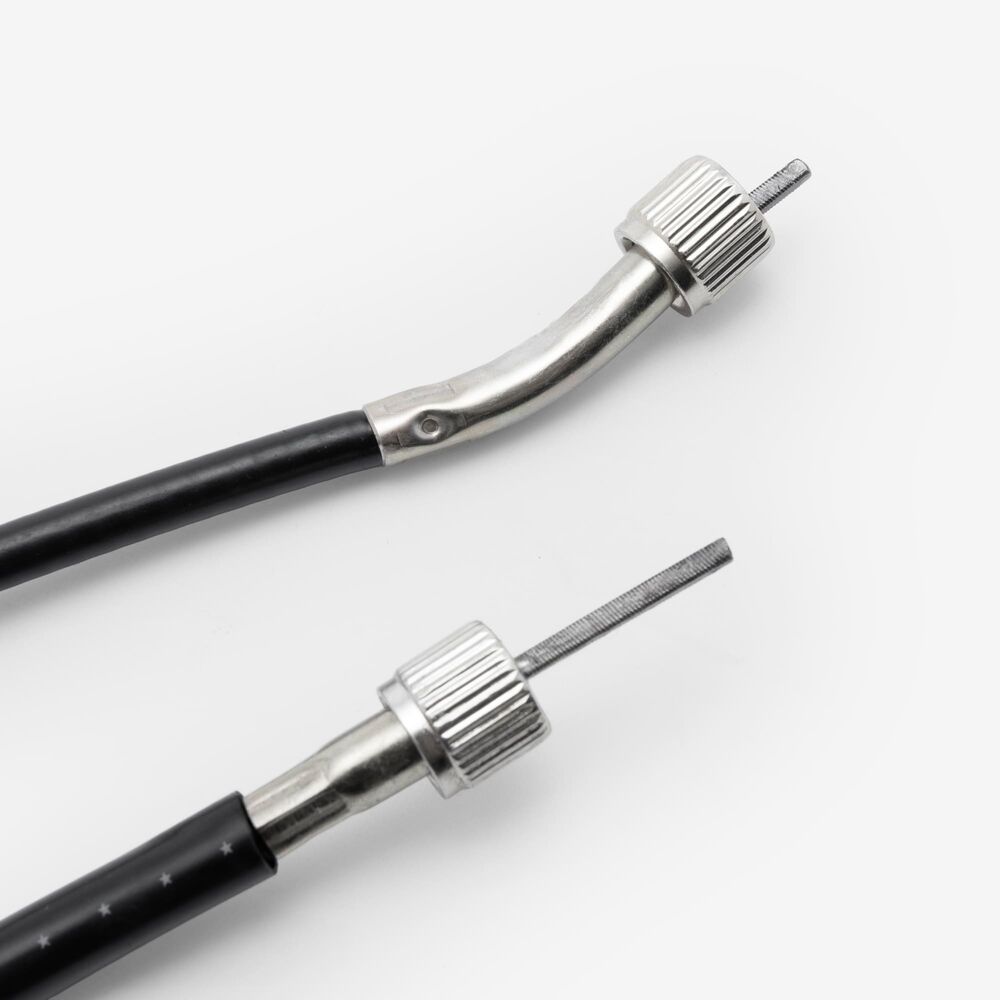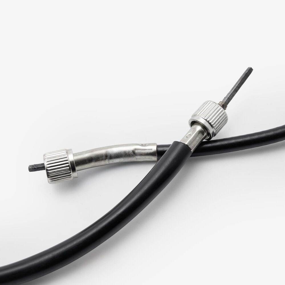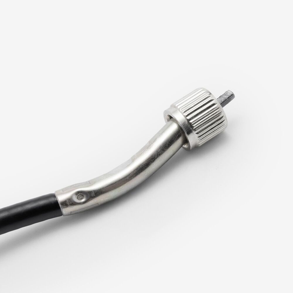The speedo cable is a flexible, often metal, cable that transmits rotational motion from the motorcycle's front wheel or transmission to the speedometer. It consists of a core that rotates inside a protective sheath, which is connected at one end to the speedometer drive and at the other end to the speedometer itself. As the wheel or transmission turns, the cable rotates and transfers this motion to the speedometer, enabling it to display the motorcycle's speed accurately. Proper maintenance and alignment of the speedo cable are crucial for reliable and accurate speed readings.