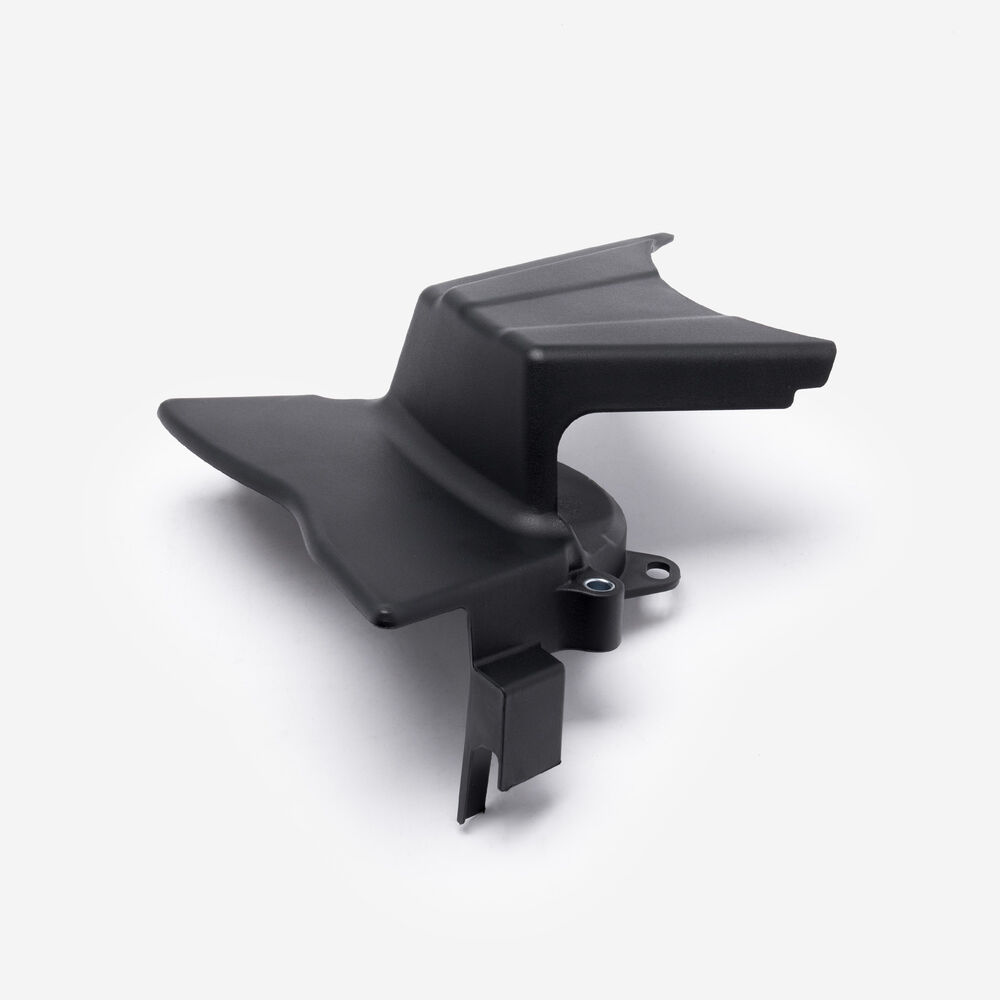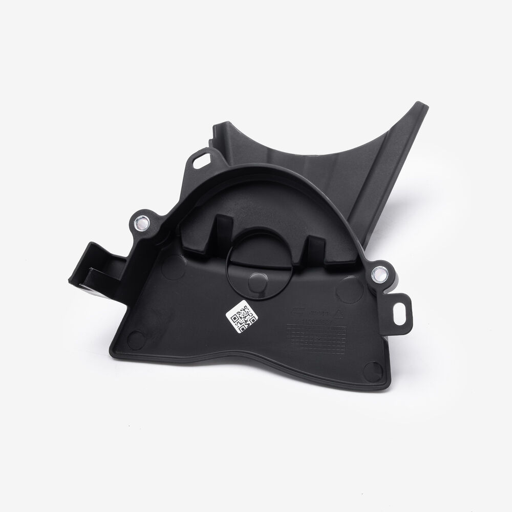 The front sprocket cover is a protective component that shields the front sprocket and chain from debris, dirt, and water. Typically made from durable materials such as plastic or metal, it is mounted over the front sprocket and often includes provisions for securing it to the motorcycle's frame or engine. The cover helps to prevent contamination of the sprocket and chain, reducing wear and extending their lifespan. Additionally, it can enhance safety by preventing accidental contact with the rotating sprocket.