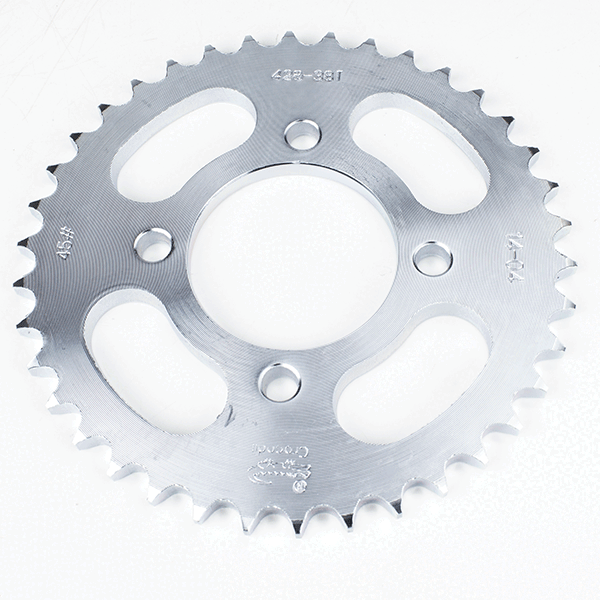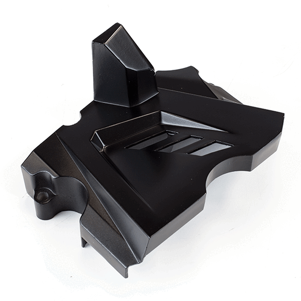 The front sprocket cover is a protective component that shields the front sprocket and chain from debris, dirt, and water. Typically made from durable materials such as plastic or metal, it is mounted over the front sprocket and often includes provisions for securing it to the motorcycle's frame or engine. The cover helps to prevent contamination of the sprocket and chain, reducing wear and extending their lifespan. Additionally, it can enhance safety by preventing accidental contact with the rotating sprocket.
