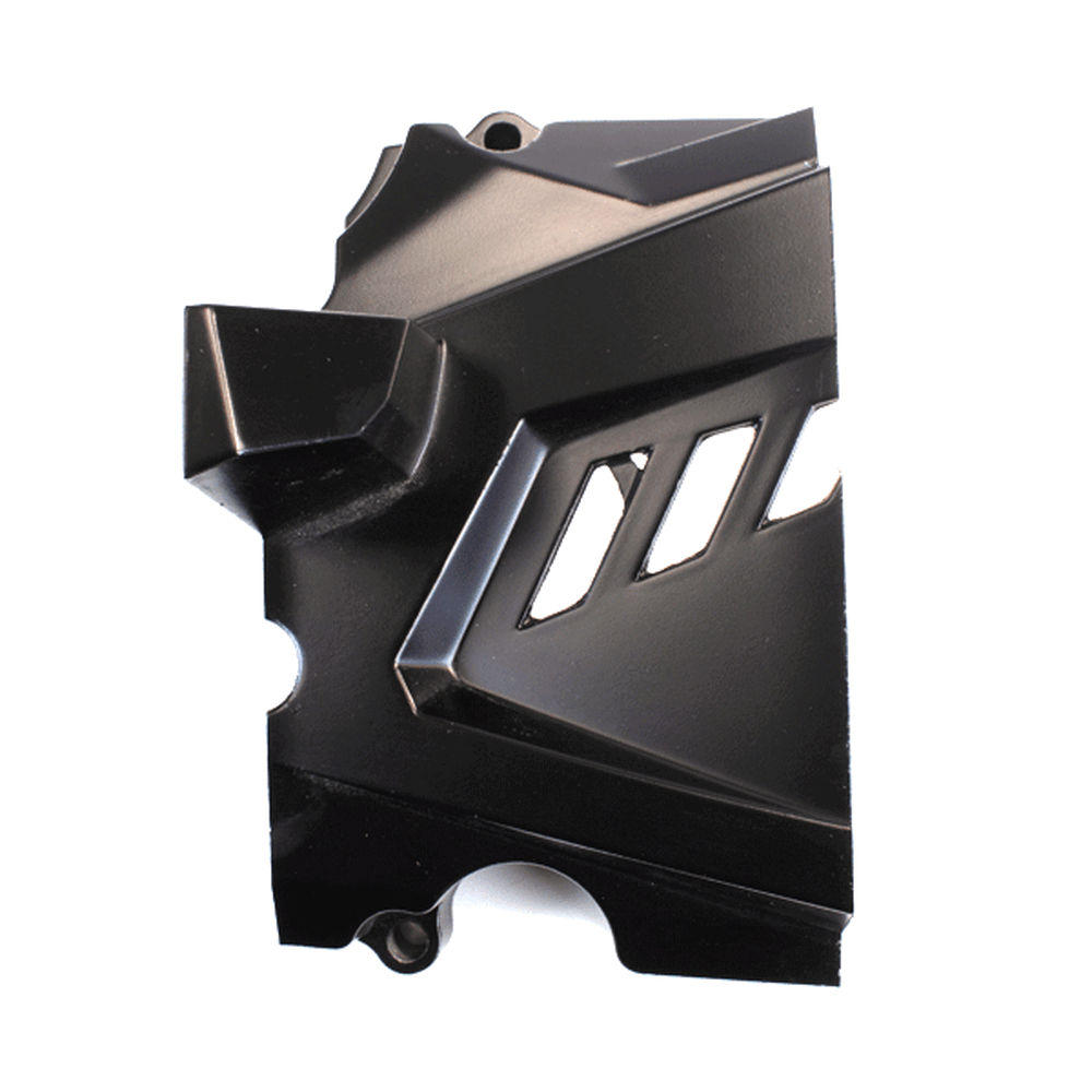 The front sprocket cover is a protective component that shields the front sprocket and chain from debris, dirt, and water. Typically made from durable materials such as plastic or metal, it is mounted over the front sprocket and often includes provisions for securing it to the motorcycle's frame or engine. The cover helps to prevent contamination of the sprocket and chain, reducing wear and extending their lifespan. Additionally, it can enhance safety by preventing accidental contact with the rotating sprocket.