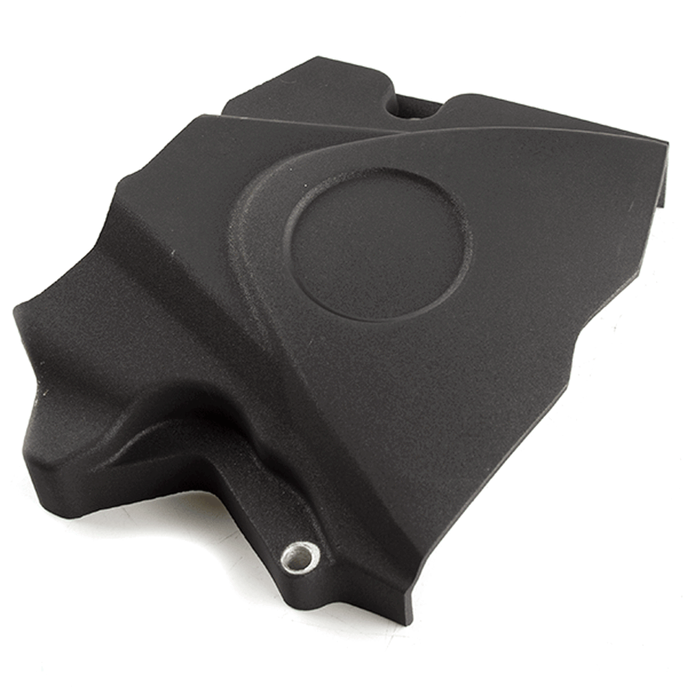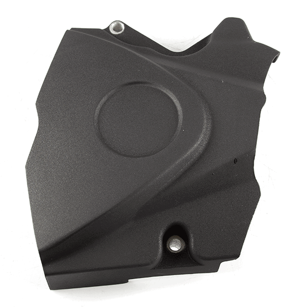 The front sprocket cover is a protective component that shields the front sprocket and chain from debris, dirt, and water. Typically made from durable materials such as plastic or metal, it is mounted over the front sprocket and often includes provisions for securing it to the motorcycle's frame or engine. The cover helps to prevent contamination of the sprocket and chain, reducing wear and extending their lifespan. Additionally, it can enhance safety by preventing accidental contact with the rotating sprocket.