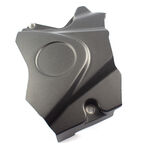 The front sprocket cover is a protective component that shields the front sprocket and chain from debris, dirt, and water. Typically made from durable materials such as plastic or metal, it is mounted over the front sprocket and often includes provisions for securing it to the motorcycle's frame or engine. The cover helps to prevent contamination of the sprocket and chain, reducing wear and extending their lifespan. Additionally, it can enhance safety by preventing accidental contact with the rotating sprocket.