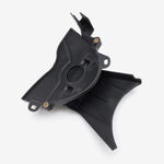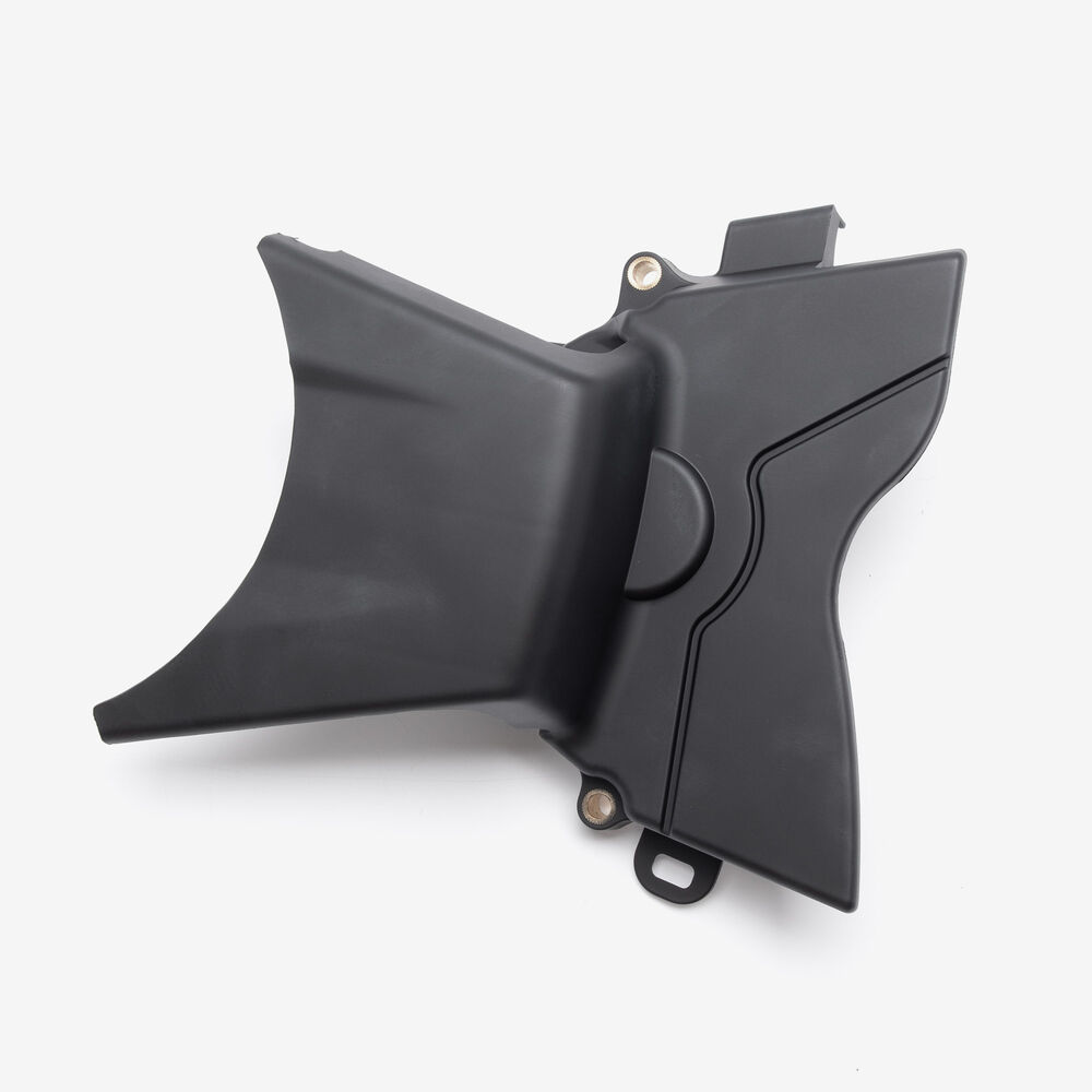 The front sprocket cover is a protective component that shields the front sprocket and chain from debris, dirt, and water. Typically made from durable materials such as plastic or metal, it is mounted over the front sprocket and often includes provisions for securing it to the motorcycle's frame or engine. The cover helps to prevent contamination of the sprocket and chain, reducing wear and extending their lifespan. Additionally, it can enhance safety by preventing accidental contact with the rotating sprocket.