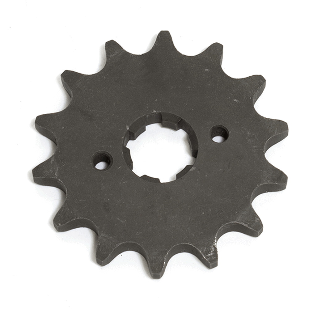 The front sprocket, also known as the countershaft sprocket, is a key component in a motorcycle's drivetrain. Located at the output shaft of the engine or transmission, it engages with the motorcycle's chain to transmit power from the engine to the rear wheel. The front sprocket works in conjunction with the rear sprocket and chain to control the motorcycle’s gearing, affecting acceleration, top speed, and overall performance. Its size and number of teeth influence the bike’s torque and speed characteristics.