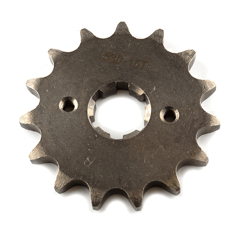 The front sprocket, also known as the countershaft sprocket, is a key component in a motorcycle's drivetrain. Located at the output shaft of the engine or transmission, it engages with the motorcycle's chain to transmit power from the engine to the rear wheel. The front sprocket works in conjunction with the rear sprocket and chain to control the motorcycle’s gearing, affecting acceleration, top speed, and overall performance. Its size and number of teeth influence the bike’s torque and speed characteristics.