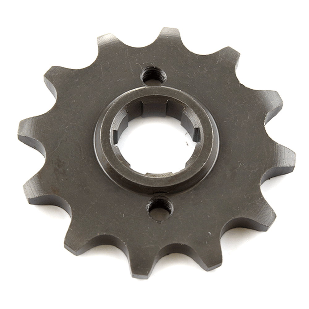 The front sprocket, also known as the countershaft sprocket, is a key component in a motorcycle's drivetrain. Located at the output shaft of the engine or transmission, it engages with the motorcycle's chain to transmit power from the engine to the rear wheel. The front sprocket works in conjunction with the rear sprocket and chain to control the motorcycle’s gearing, affecting acceleration, top speed, and overall performance. Its size and number of teeth influence the bike’s torque and speed characteristics.