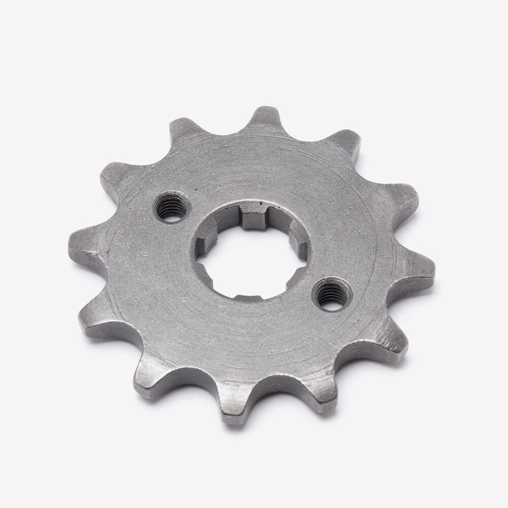 The front sprocket, also known as the countershaft sprocket, is a key component in a motorcycle's drivetrain. Located at the output shaft of the engine or transmission, it engages with the motorcycle's chain to transmit power from the engine to the rear wheel. The front sprocket works in conjunction with the rear sprocket and chain to control the motorcycle’s gearing, affecting acceleration, top speed, and overall performance. Its size and number of teeth influence the bike’s torque and speed characteristics.