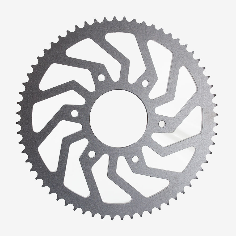 The front sprocket, also known as the countershaft sprocket, is a key component in a motorcycle's drivetrain. Located at the output shaft of the engine or transmission, it engages with the motorcycle's chain to transmit power from the engine to the rear wheel. The front sprocket works in conjunction with the rear sprocket and chain to control the motorcycle’s gearing, affecting acceleration, top speed, and overall performance. Its size and number of teeth influence the bike’s torque and speed characteristics.