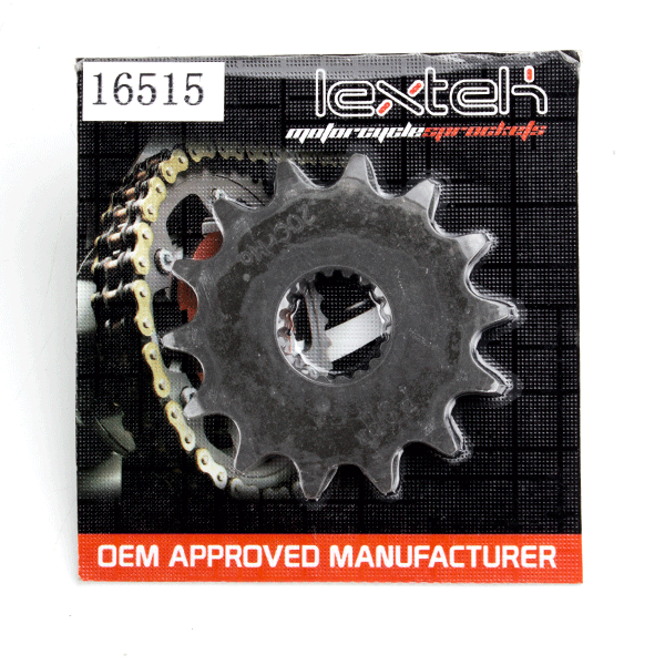 The front sprocket, also known as the countershaft sprocket, is a key component in a motorcycle's drivetrain. Located at the output shaft of the engine or transmission, it engages with the motorcycle's chain to transmit power from the engine to the rear wheel. The front sprocket works in conjunction with the rear sprocket and chain to control the motorcycle’s gearing, affecting acceleration, top speed, and overall performance. Its size and number of teeth influence the bike’s torque and speed characteristics.