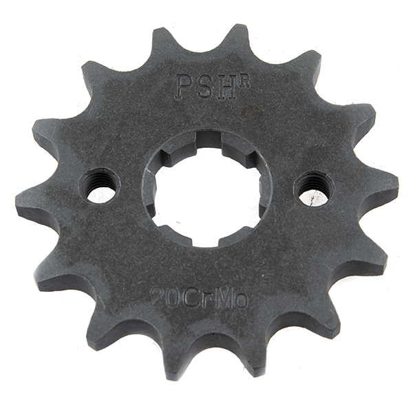 The front sprocket, also known as the countershaft sprocket, is a key component in a motorcycle's drivetrain. Located at the output shaft of the engine or transmission, it engages with the motorcycle's chain to transmit power from the engine to the rear wheel. The front sprocket works in conjunction with the rear sprocket and chain to control the motorcycle’s gearing, affecting acceleration, top speed, and overall performance. Its size and number of teeth influence the bike’s torque and speed characteristics.