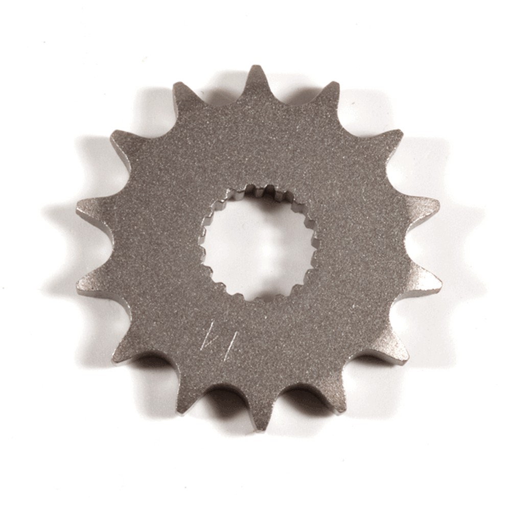 The front sprocket, also known as the countershaft sprocket, is a key component in a motorcycle's drivetrain. Located at the output shaft of the engine or transmission, it engages with the motorcycle's chain to transmit power from the engine to the rear wheel. The front sprocket works in conjunction with the rear sprocket and chain to control the motorcycle’s gearing, affecting acceleration, top speed, and overall performance. Its size and number of teeth influence the bike’s torque and speed characteristics.