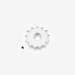 The front sprocket, also known as the countershaft sprocket, is a key component in a motorcycle's drivetrain. Located at the output shaft of the engine or transmission, it engages with the motorcycle's chain to transmit power from the engine to the rear wheel. The front sprocket works in conjunction with the rear sprocket and chain to control the motorcycle’s gearing, affecting acceleration, top speed, and overall performance. Its size and number of teeth influence the bike’s torque and speed characteristics.