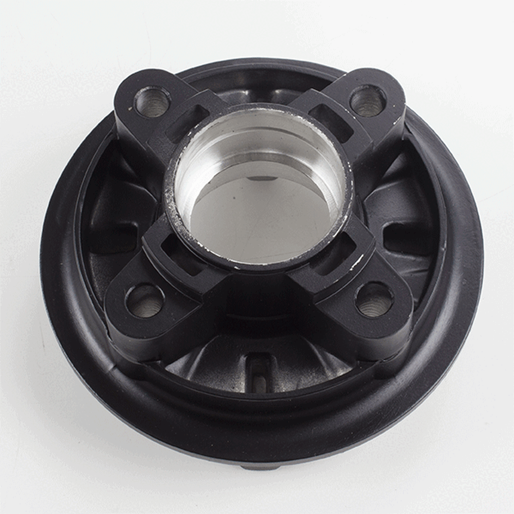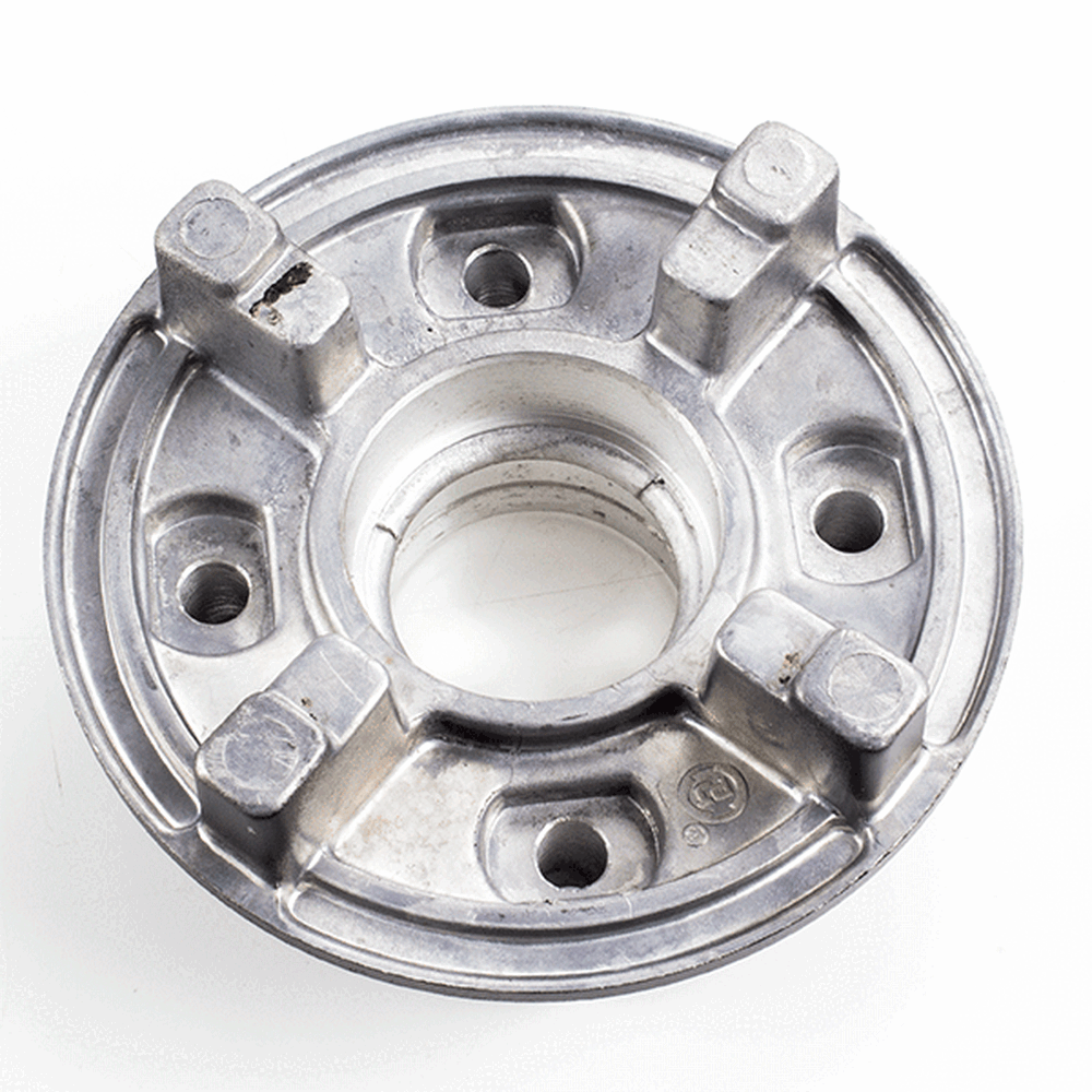 The sprocket hub is a central component that connects the sprocket to the motorcycle's wheel or drive assembly. It is typically a metal disc or plate with a central mounting area that aligns with the wheel's hub or drive shaft. The sprocket hub ensures proper alignment and stability of the sprocket, which is crucial for efficient power transfer from the engine to the rear wheel. It may include features for mounting bolts or securing mechanisms and is designed to withstand the forces and vibrations experienced during riding.