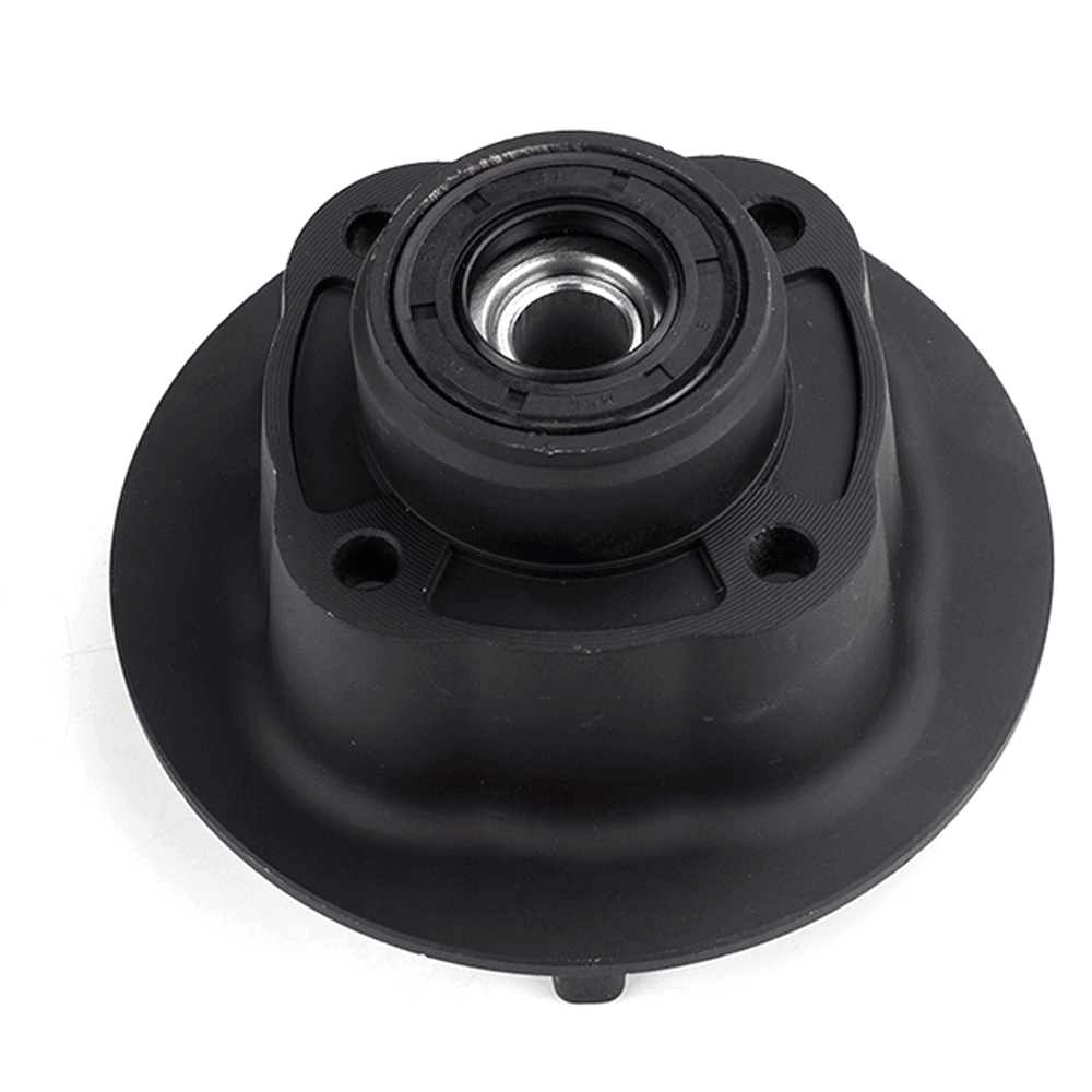 The sprocket hub is a central component that connects the sprocket to the motorcycle's wheel or drive assembly. It is typically a metal disc or plate with a central mounting area that aligns with the wheel's hub or drive shaft. The sprocket hub ensures proper alignment and stability of the sprocket, which is crucial for efficient power transfer from the engine to the rear wheel. It may include features for mounting bolts or securing mechanisms and is designed to withstand the forces and vibrations experienced during riding.