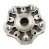 The sprocket hub is a central component that connects the sprocket to the motorcycle's wheel or drive assembly. It is typically a metal disc or plate with a central mounting area that aligns with the wheel's hub or drive shaft. The sprocket hub ensures proper alignment and stability of the sprocket, which is crucial for efficient power transfer from the engine to the rear wheel. It may include features for mounting bolts or securing mechanisms and is designed to withstand the forces and vibrations experienced during riding.