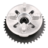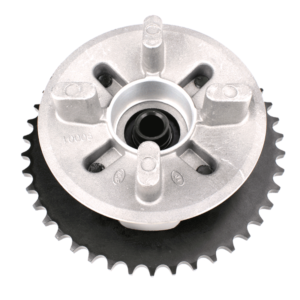 The sprocket hub is a central component that connects the sprocket to the motorcycle's wheel or drive assembly. It is typically a metal disc or plate with a central mounting area that aligns with the wheel's hub or drive shaft. The sprocket hub ensures proper alignment and stability of the sprocket, which is crucial for efficient power transfer from the engine to the rear wheel. It may include features for mounting bolts or securing mechanisms and is designed to withstand the forces and vibrations experienced during riding.