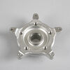 The sprocket hub is a central component that connects the sprocket to the motorcycle's wheel or drive assembly. It is typically a metal disc or plate with a central mounting area that aligns with the wheel's hub or drive shaft. The sprocket hub ensures proper alignment and stability of the sprocket, which is crucial for efficient power transfer from the engine to the rear wheel. It may include features for mounting bolts or securing mechanisms and is designed to withstand the forces and vibrations experienced during riding.