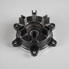 The sprocket hub is a central component that connects the sprocket to the motorcycle's wheel or drive assembly. It is typically a metal disc or plate with a central mounting area that aligns with the wheel's hub or drive shaft. The sprocket hub ensures proper alignment and stability of the sprocket, which is crucial for efficient power transfer from the engine to the rear wheel. It may include features for mounting bolts or securing mechanisms and is designed to withstand the forces and vibrations experienced during riding.