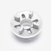 The sprocket hub is a central component that connects the sprocket to the motorcycle's wheel or drive assembly. It is typically a metal disc or plate with a central mounting area that aligns with the wheel's hub or drive shaft. The sprocket hub ensures proper alignment and stability of the sprocket, which is crucial for efficient power transfer from the engine to the rear wheel. It may include features for mounting bolts or securing mechanisms and is designed to withstand the forces and vibrations experienced during riding.