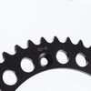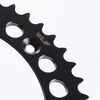 The rear sprocket on a motorcycle is a key component of the drivetrain system, located on the rear wheel hub. It works in conjunction with the front sprocket and the chain to transmit power from the engine to the rear wheel, propelling the motorcycle forward. The rear sprocket features a series of teeth that mesh with the chain, and its size affects the motorcycle’s gearing and performance characteristics. A larger rear sprocket increases torque and acceleration, while a smaller one improves top speed and fuel efficiency. Proper maintenance and alignment of the rear sprocket are essential for optimal drivetrain performance and safety.
