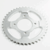 The rear sprocket on a motorcycle is a key component of the drivetrain system, located on the rear wheel hub. It works in conjunction with the front sprocket and the chain to transmit power from the engine to the rear wheel, propelling the motorcycle forward. The rear sprocket features a series of teeth that mesh with the chain, and its size affects the motorcycle’s gearing and performance characteristics. A larger rear sprocket increases torque and acceleration, while a smaller one improves top speed and fuel efficiency. Proper maintenance and alignment of the rear sprocket are essential for optimal drivetrain performance and safety.