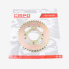The rear sprocket on a motorcycle is a key component of the drivetrain system, located on the rear wheel hub. It works in conjunction with the front sprocket and the chain to transmit power from the engine to the rear wheel, propelling the motorcycle forward. The rear sprocket features a series of teeth that mesh with the chain, and its size affects the motorcycle’s gearing and performance characteristics. A larger rear sprocket increases torque and acceleration, while a smaller one improves top speed and fuel efficiency. Proper maintenance and alignment of the rear sprocket are essential for optimal drivetrain performance and safety.