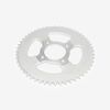 The rear sprocket on a motorcycle is a key component of the drivetrain system, located on the rear wheel hub. It works in conjunction with the front sprocket and the chain to transmit power from the engine to the rear wheel, propelling the motorcycle forward. The rear sprocket features a series of teeth that mesh with the chain, and its size affects the motorcycle’s gearing and performance characteristics. A larger rear sprocket increases torque and acceleration, while a smaller one improves top speed and fuel efficiency. Proper maintenance and alignment of the rear sprocket are essential for optimal drivetrain performance and safety.