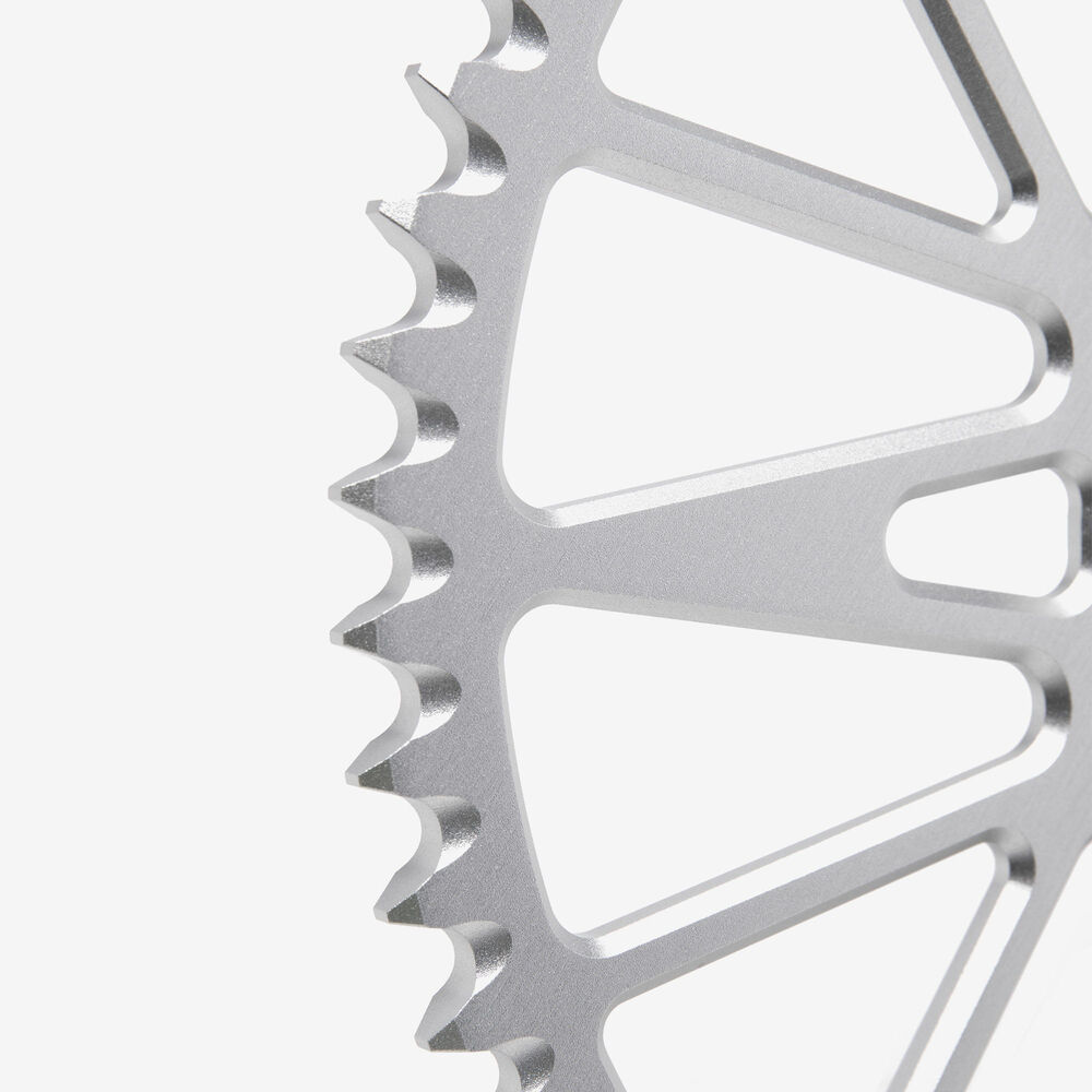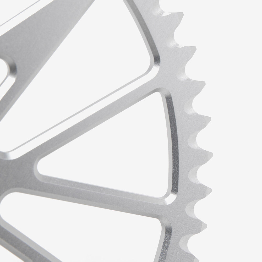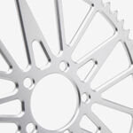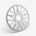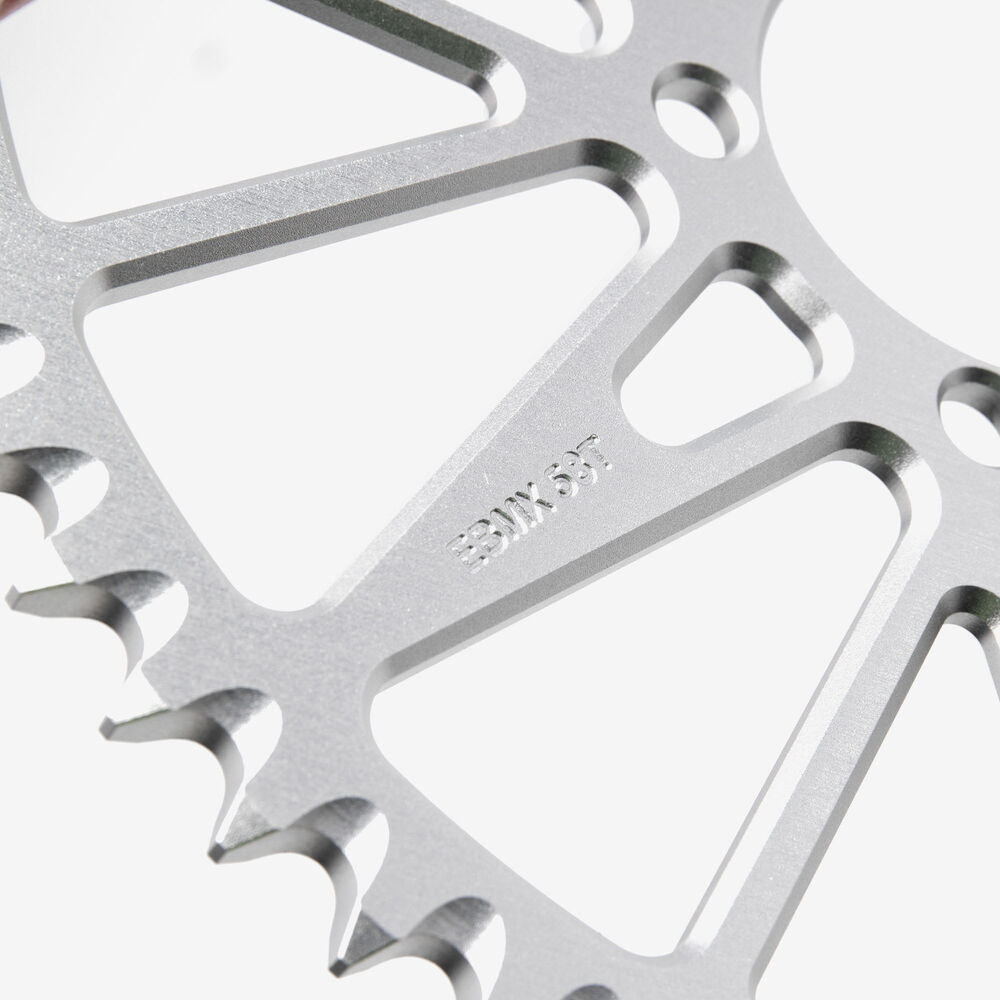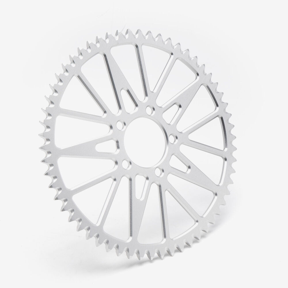 The rear sprocket on a motorcycle is a key component of the drivetrain system, located on the rear wheel hub. It works in conjunction with the front sprocket and the chain to transmit power from the engine to the rear wheel, propelling the motorcycle forward. The rear sprocket features a series of teeth that mesh with the chain, and its size affects the motorcycle’s gearing and performance characteristics. A larger rear sprocket increases torque and acceleration, while a smaller one improves top speed and fuel efficiency. Proper maintenance and alignment of the rear sprocket are essential for optimal drivetrain performance and safety.